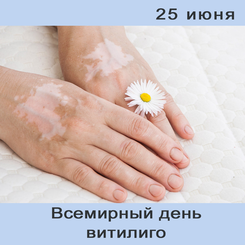 Ежегодно 25 июня отмечают Всемирный день витилиго – кожного заболевания, характеризующегося нарушением пигментации на отдельных участках кожи, вызванного исчезновением меланина. Праздник был инициирован основателем социальной сети Vitiligo Friends и исполнительным директором фонда Vitiligo Support and Awareness Foundation с целью повышения осведомленности о заболевании и поддержке больных во всем мире.