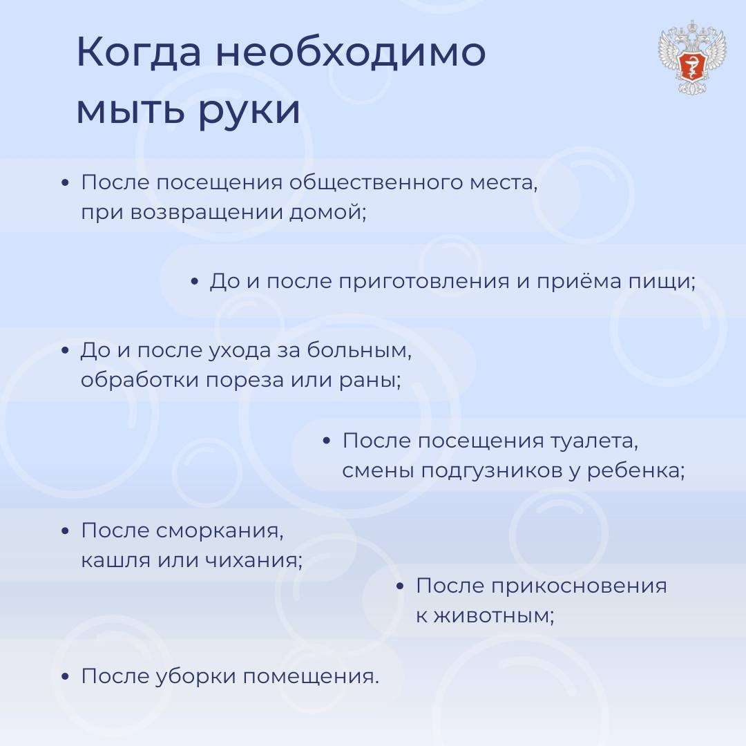 Согласно данным Министерства здравоохранения Российской Федерации, на руках человека может находиться до 140 миллионов бактерий. Чтобы они погибли, рекомендуется мыть руки с мылом в теплой воде в течение 20 секунд, а вытирать чистым и свежим полотенцем, желательно меняя его каждый день. Однако, не стоит часто мыть руки с мылом, так как вместе с патогенной флорой истончается и защитный кожный барьер.