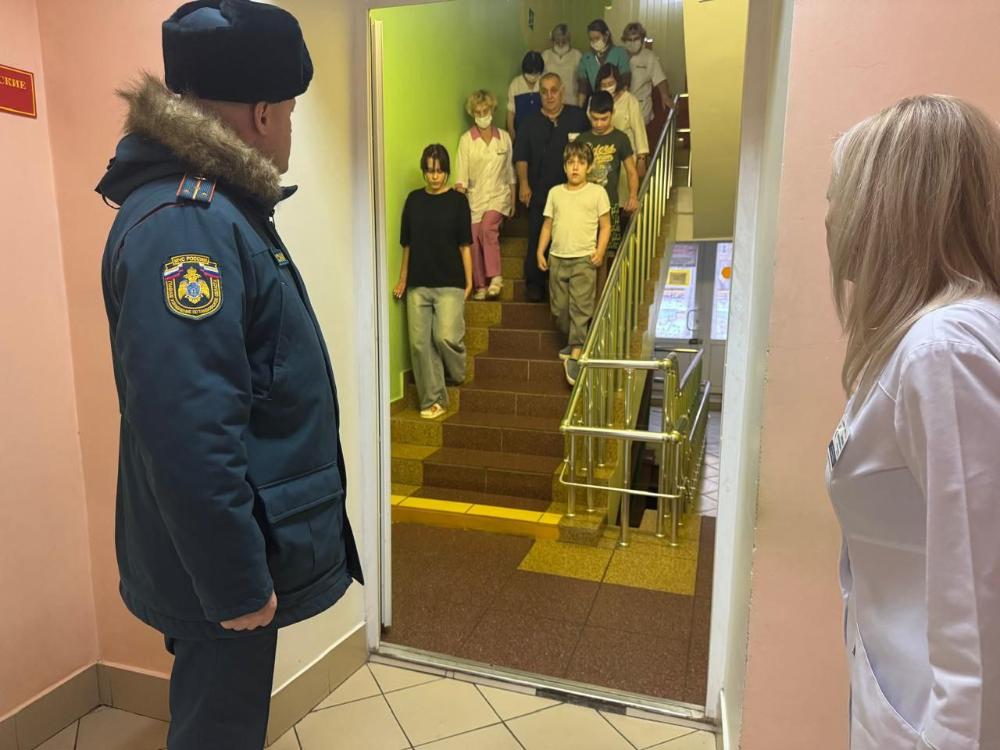 По сценарию тренировки после условного сигнала тревоги медицинский персонал осуществил эвакуацию по обозначенным маршрутам. Условное возгорание удалось потушить силами сотрудников больницы.