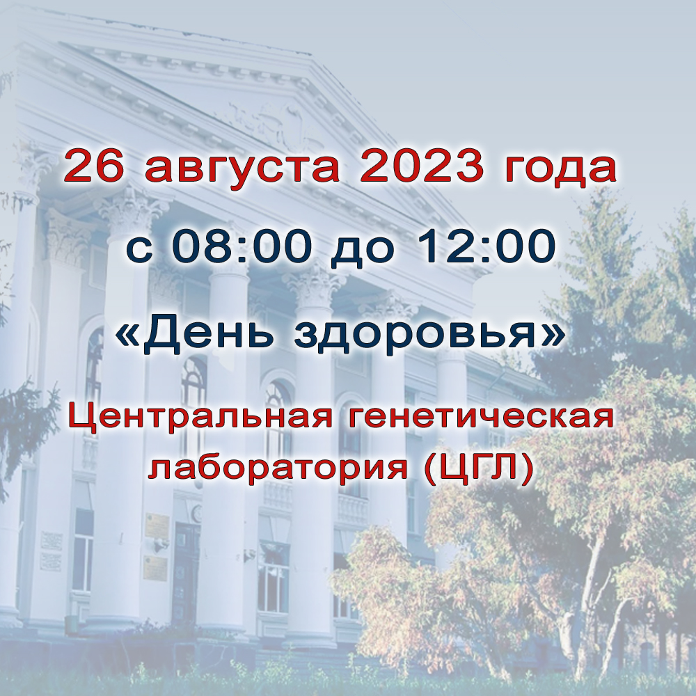 26 августа 2023 года с 08:00 до 12:00 на территории Центральной генетической лаборатории им. И.В. Мичурина (ЦГЛ) состоится День здоровья.