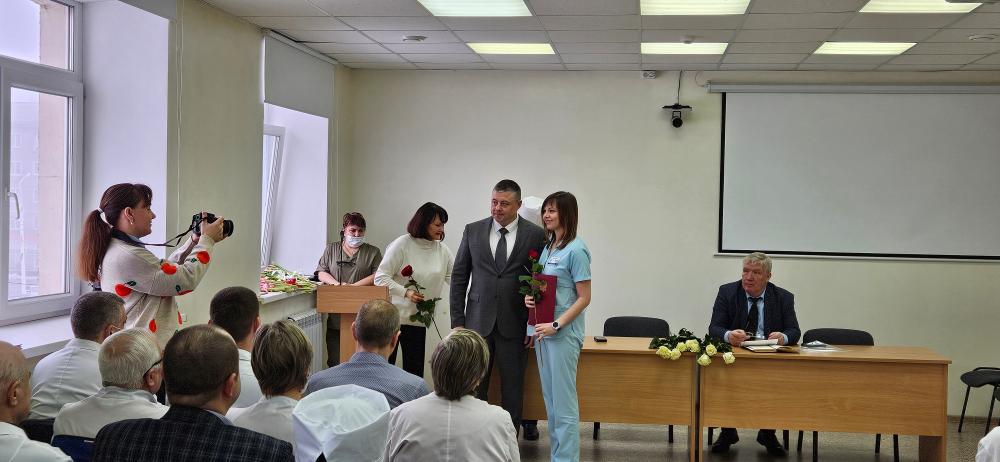 Поздравить женщин и вручить благодарственные письма пришли глава администрации города Мичуринска Максим Викторович Харников и заместитель министра здравоохранения Тамбовской области Виталий Владимирович Вутнанс.